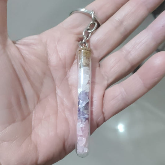Triple Crystal Healing Bottle Keychain – Rose Quartz, Amethyst & Clear Quartz Energy Charm