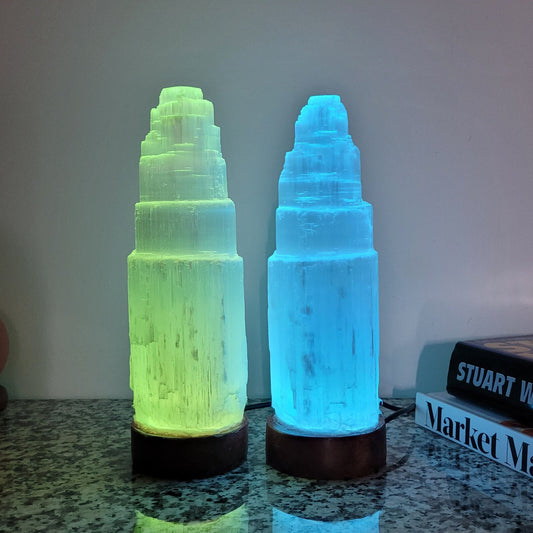 Selenite Tower Shape Lamp with Multicolor Light