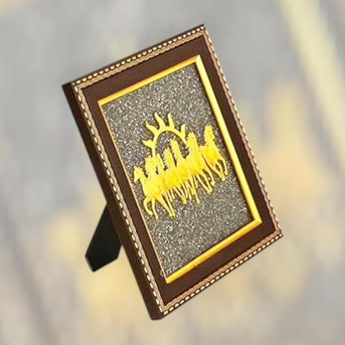 According to Vastu Shastra, this powerful combination of 7 golden horses on a Pyrite crystal base enhances fame, career success, and financial prosperity.