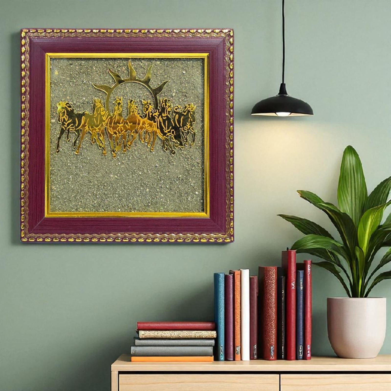 Pyrite Stone Vastu Seven Running Horses with Sun โ 7 Horses on Raw Pyrite Frame